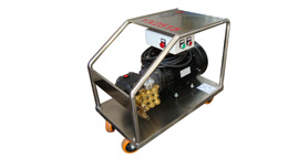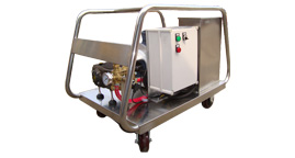 - 高压冷水清洗机 产品说明 ●24伏低压控制●TST关枪延时停机功能●双压力开关控制●压力调节阀●超压保护安全阀●工业级陶瓷柱塞曲轴泵●可连续8小时不停机工作●威卡防震阻尼压力表●工业四级低速电机●