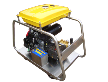 移动式下水管道清洗机用于管道疏通清除管道污物及堵塞。一般都以汽油柴油发动机或电机驱动高压柱塞泵工作,利用高压水射流在喷头上产生的推进力疏通管道。当喷头进入被疏通管道内利用喷头后方喷出的高压水所产生的反作用力推动喷头前进,将管内杂物带出管外,以达到清洗疏通的目的。
